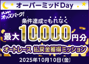 オーバーミッドDay【条件達成でもれなく最大10,000円分】10月10日(金)のオートレース 払戻金獲得ミッション