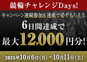 【条件達成でもれなく最大12,000円分】競輪チャレンジDays!連続達成ボーナスキャンペーン!