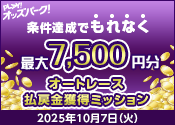 【条件達成でもれなく最大7,500円分】10月7日(火)のオートレース 払戻金獲得ミッション