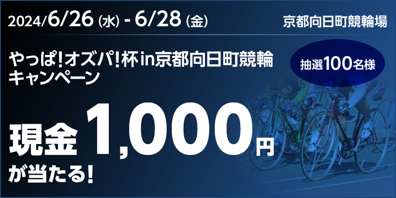 対象期間中に開催される、京都向日町競輪のガールズケイリンの勝者投票券をオッズパークで合計1,000円以上購入すること。