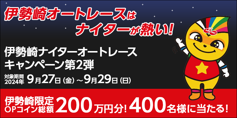 対象期間中に開催される、伊勢崎オートレースの勝車投票券(重勝式を含む)をオッズパークで合計3,000円以上購入すること。