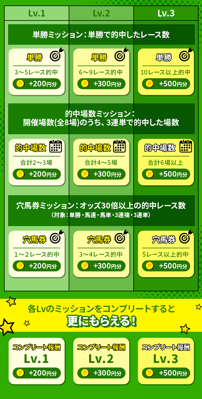 ※(B)は、同一開催場で複数回達成した場合、達成場数は1場分となります。