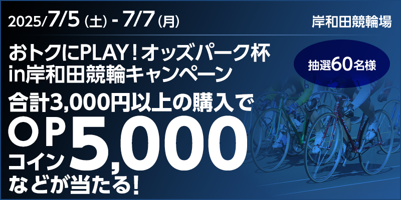 対象期間中に開催される、岸和田競輪の勝者投票券をオッズパークで合計3,000円以上購入すること。