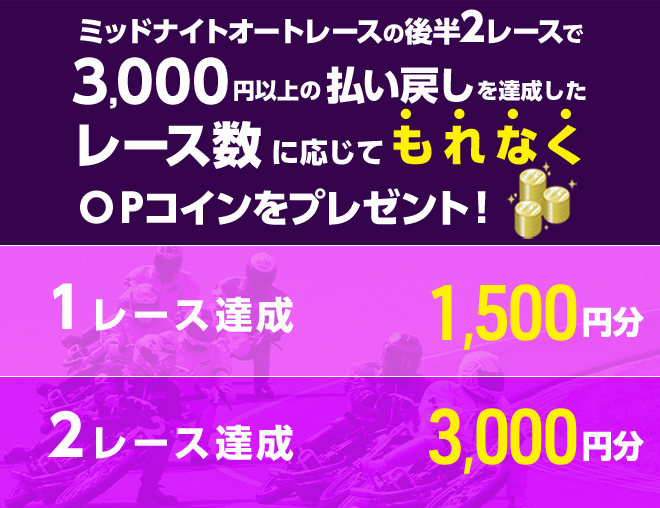 ※ミッドナイトオートレースのみで条件(A・B)を達成した場合も含みます。