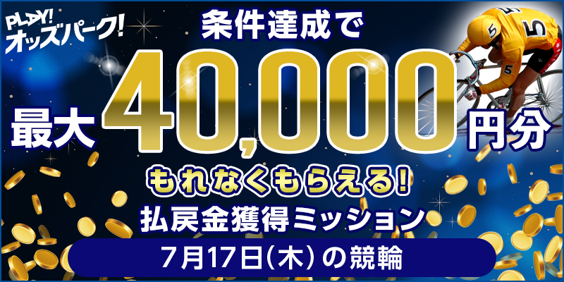 - 競走が不成立、開催中止、順延、または選手の欠場などで返金となった場合、その投票はキャンペーンの対象外となります。また、その場合でも、原則としてキャンペーン期間の延長や条件変更は行わず、記載の内容に従って実施いたします。