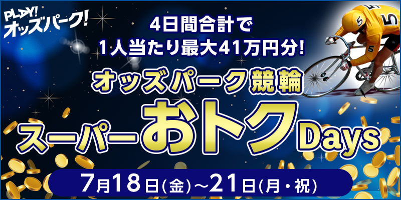 サマーナイトフェスティバルGII開催中の 7月18日(金)~21日(祝・月)はOPコイン大放出! ぜひ、オッズパークで競輪をお楽しみください!