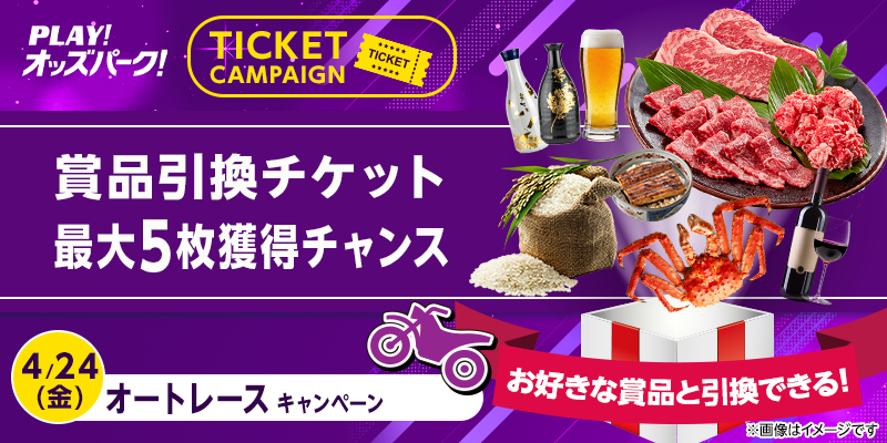 対象日に開催される、オートレースの勝車投票券(単勝・ワイドを除く)をオッズパークで合計10,000円以上購入すること。
