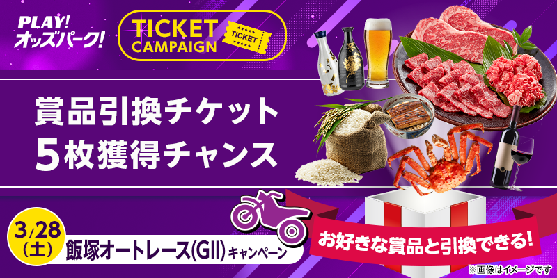 対象日に開催される、飯塚オートレースの勝車投票券(単勝・ワイドを除く)をオッズパークで合計15,000円以上購入すること。