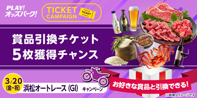 対象日に開催される、浜松オートレースの勝車投票券(単勝・ワイドを除く)をオッズパークで合計10,000円以上購入すること。