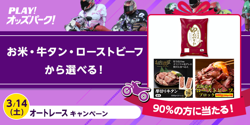 対象日に開催される、オートレースの勝車投票券(単勝・複勝・ワイドを除く)をオッズパークで合計15,000円以上購入すること。