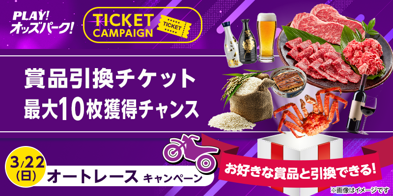 対象日に開催される、オートレースの勝車投票券(単勝・ワイドを除く)をオッズパークで合計20,000円以上購入すること。
