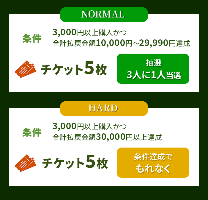 ※一部の賞品は、本キャンペーン以外で獲得したチケットを含めた枚数が必要となる場合がございます。