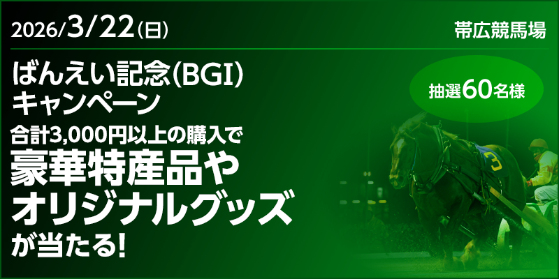 対象日に開催される、ばんえい競馬の勝馬投票券(重勝式を除く)をオッズパークで合計3,000円以上購入すること。