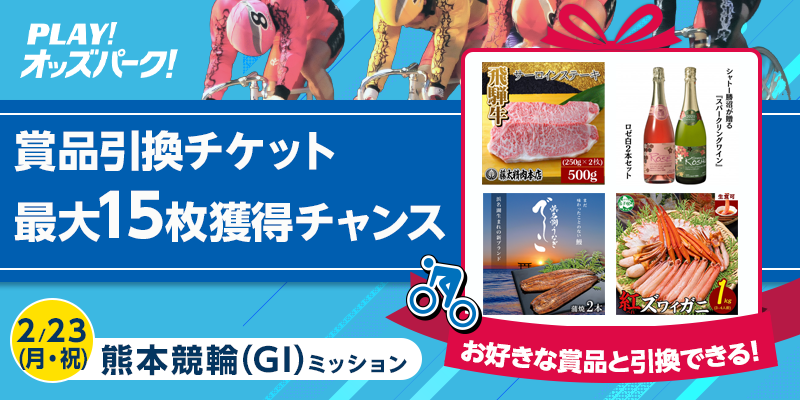 対象日に開催される、熊本競輪の勝者投票券(ワイドを除く)をオッズパークで合計35,000円以上購入すること。