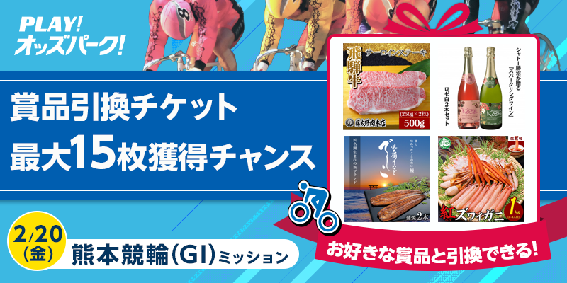 対象日に開催される、熊本競輪の勝者投票券(ワイドを除く)をオッズパークで合計35,000円以上購入すること。
