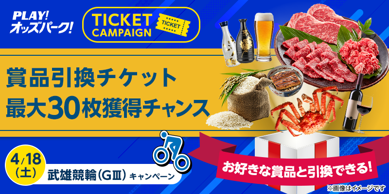 対象日に開催される、武雄競輪の勝者投票券(ワイドを除く)をオッズパークで合計50,000円以上購入すること。