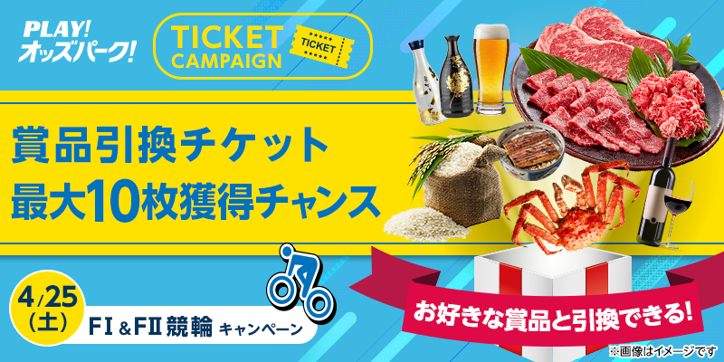 対象日に開催される、FI&FII競輪の勝者投票券(ワイドを除く)をオッズパークで合計30,000円以上購入すること。