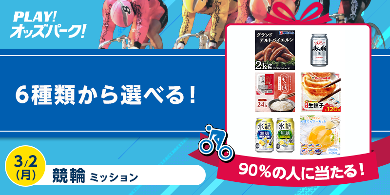 対象日に開催される競輪の勝者投票券(ワイドを除く)を、オッズパークで1レースあたり合計5,000円以上を8レース以上で購入すること。