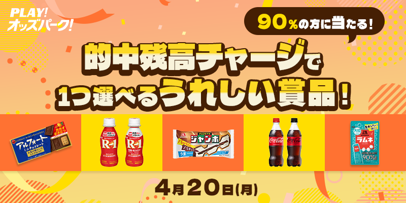 2026年4月20日(月)00:00~23:59に的中残高からのチャージまたは的中チャージにて、OPコインに合計5,000円以上チャージ