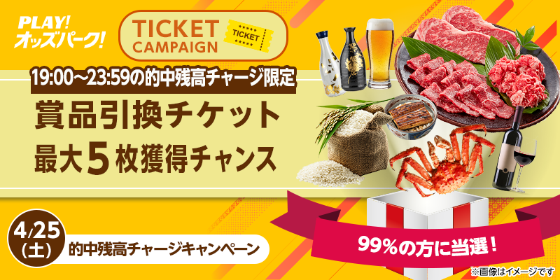 2026年4月25日(土)19:00~23:59に的中残高からのチャージまたは的中チャージにて、OPコインに合計50,000円以上チャージ
