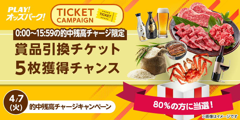 00:00~15:59に的中残高チャージでチケットが当たる!