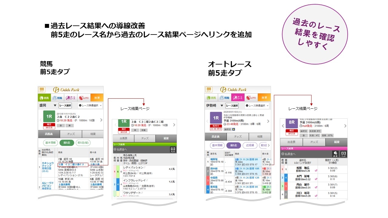 お客さまにより快適にサービスをご利用いただくため、いただいたご意見を基に、出走表ページデザインを一部リニューアルし、スマホ版出走表ページの表示情報を拡充いたします。