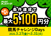 【3月27日-31日競馬で最大5,100円分】条件達成でもれなくもらえる!競馬チャレンジDays