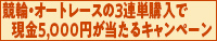 | 競輪・オートレースの3連単購入で現金5,000円が当たるキャンペーン 2023年10月27日 ∼ 2023年11月 6日 |