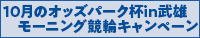 | 10月のオッズパーク杯in武雄 モーニング競輪キャンペーン 2023年10月 2日 ∼ 2023年10月 6日 |