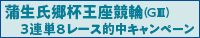 | 【条件達成でもれなく現金1万2,000円!】蒲生氏郷杯王座競輪(GIII)3連単8レース的中キャンペーン 2022年10月 6日 ∼ 2022年10月11日 |