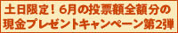 | 土日限定!6月の投票額全額分の現金プレゼントキャンペーン第2弾 2022年6月23日 ∼ 2022年6月27日 |
