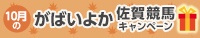 | 10月のがばいよか佐賀競馬キャンペーン 2020年9月28日 ∼ 2020年11月 1日 |